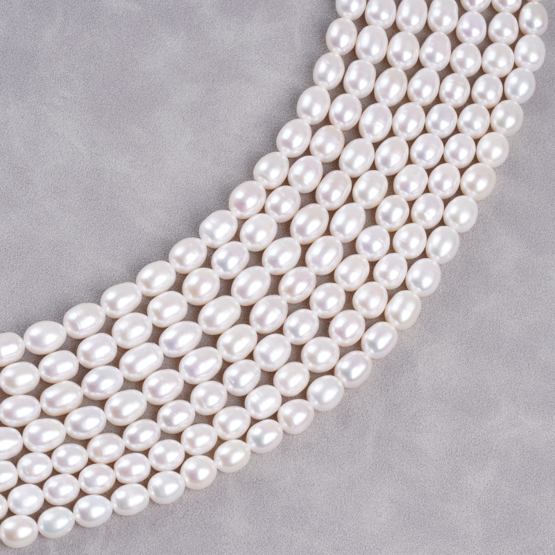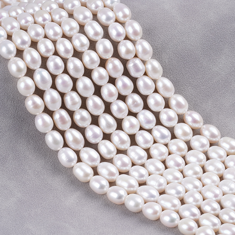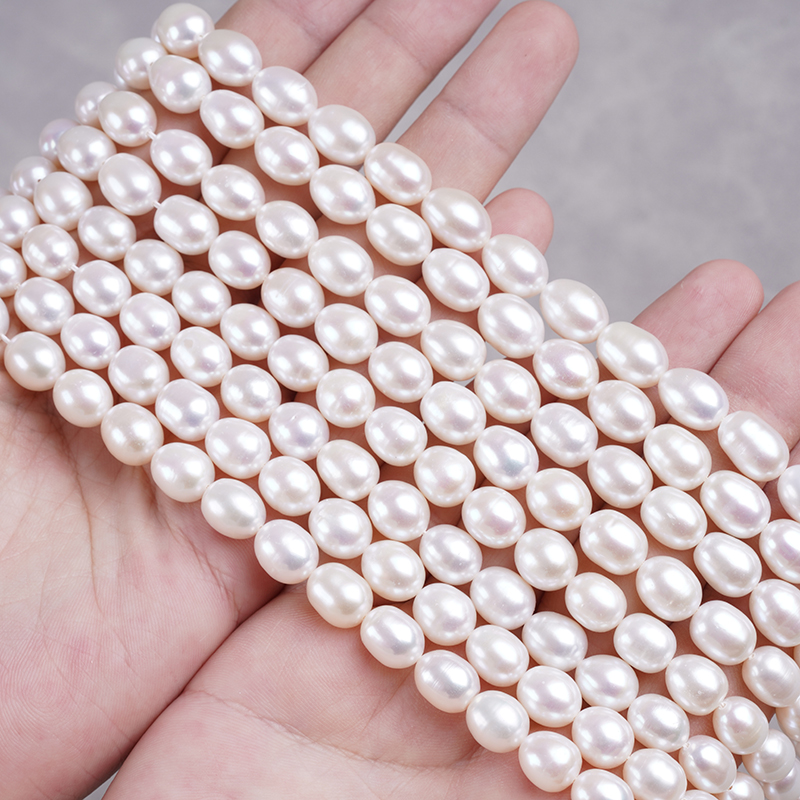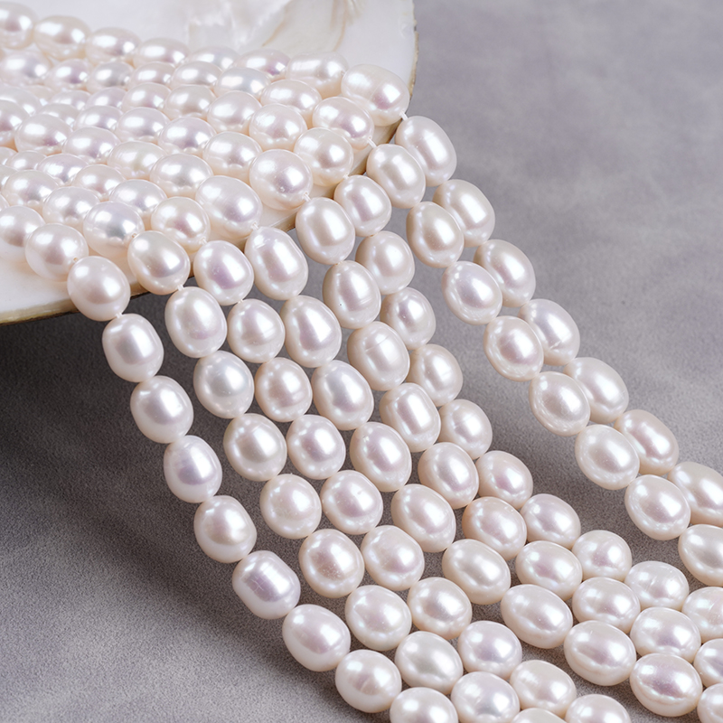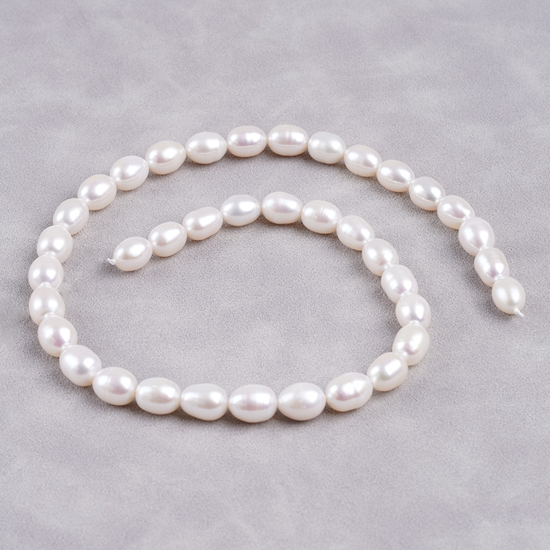 ไข่มุกน้ำจืด cultured รูปทรงข้าว ขนาด 8-9 มม. สีขาวธรรมชาติ สำหรับทำสร้อยคอ