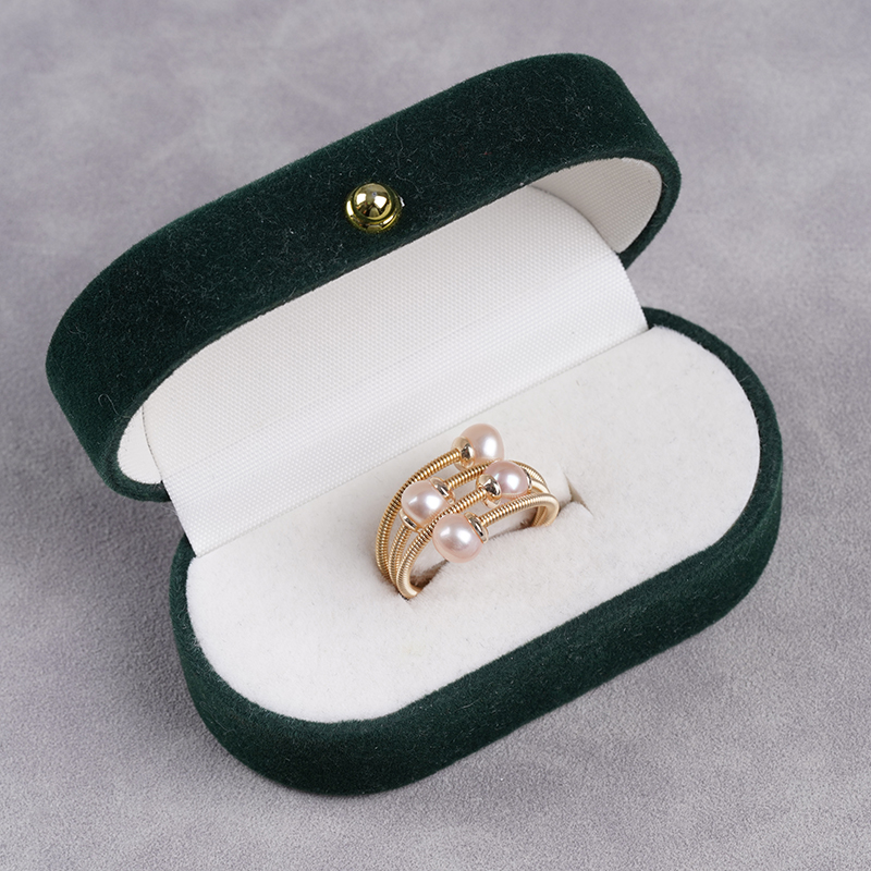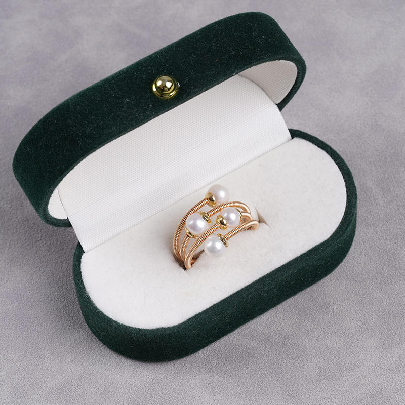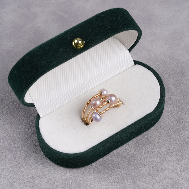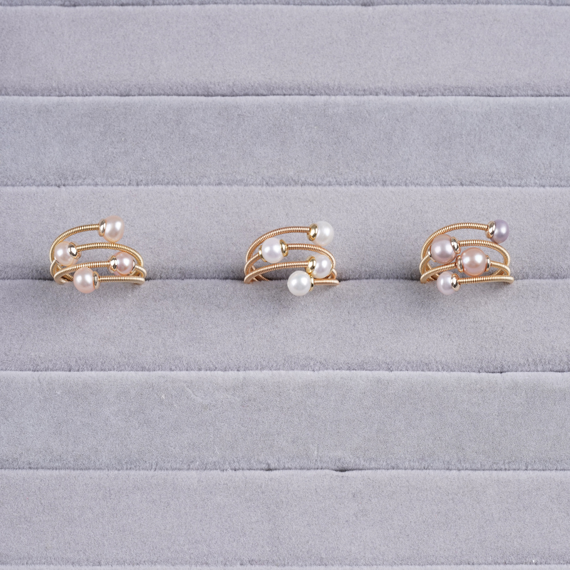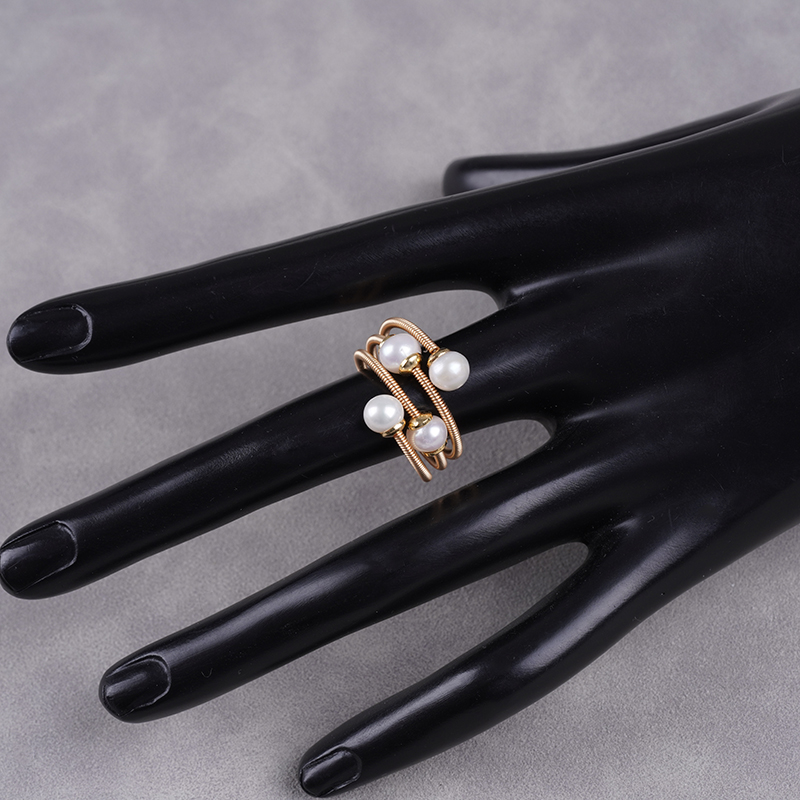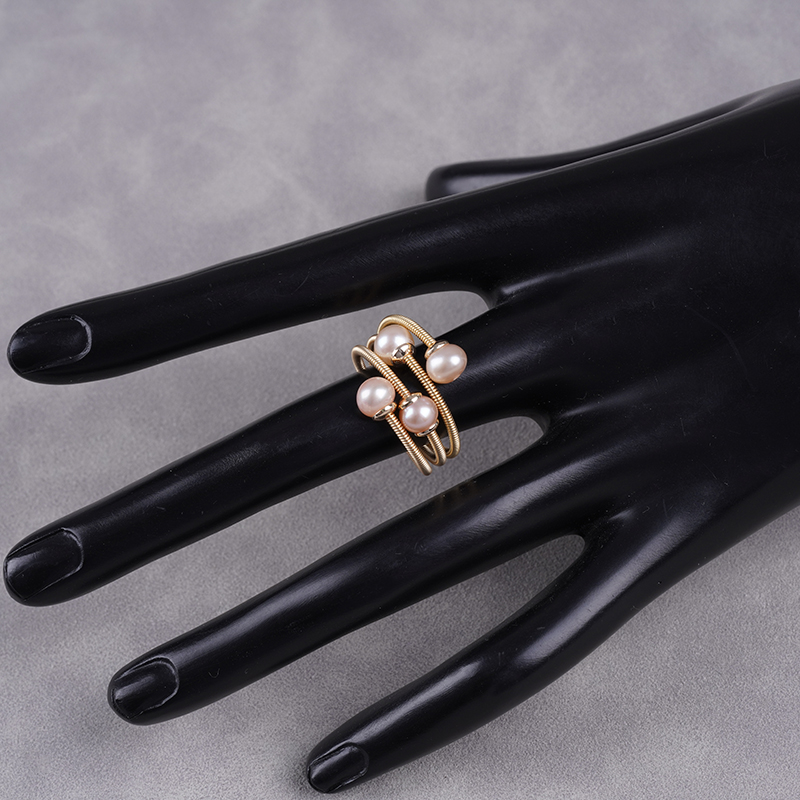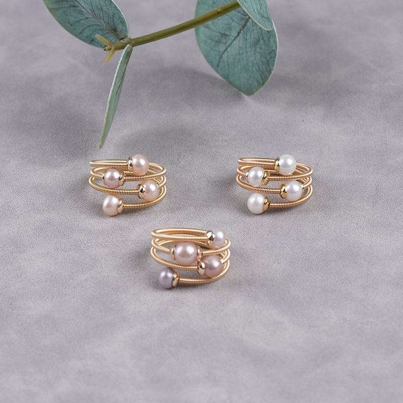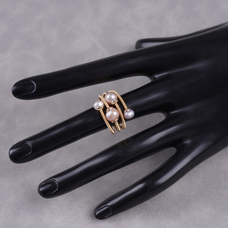 แหวนลูกปัดน้ำจืดเลี้ยงสังเคราะห์ทำมือด้วยลวดทองเหลือง