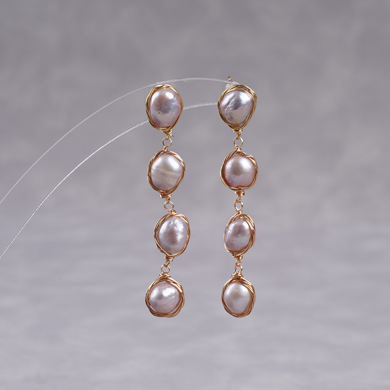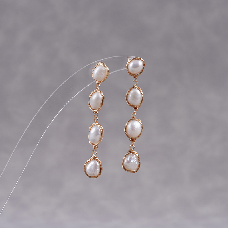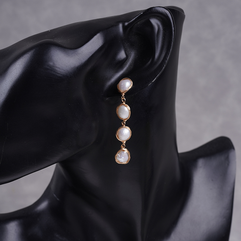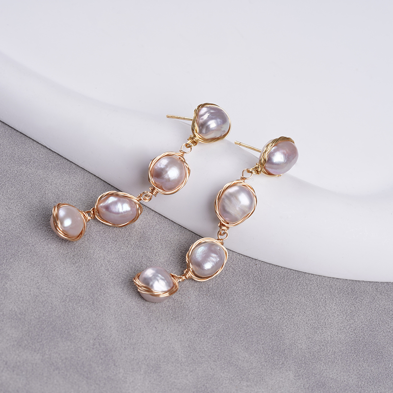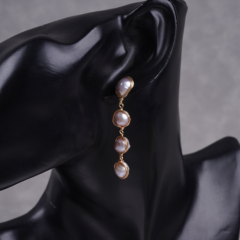 ต่างหูยาวไข่มุกบาร็อคไข่มุกแท้จากน้ำจืด
