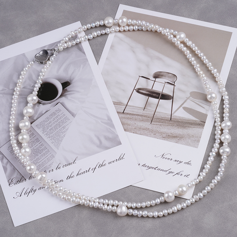 สร้อยไข่มุกขายส่ง 97cm สร้อยไข่มุกน้ำจืด สร้อยคอเสื้อสเวตเตอร์