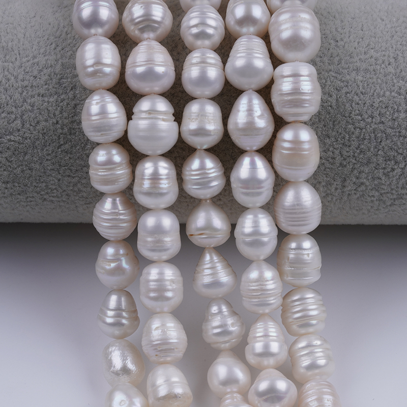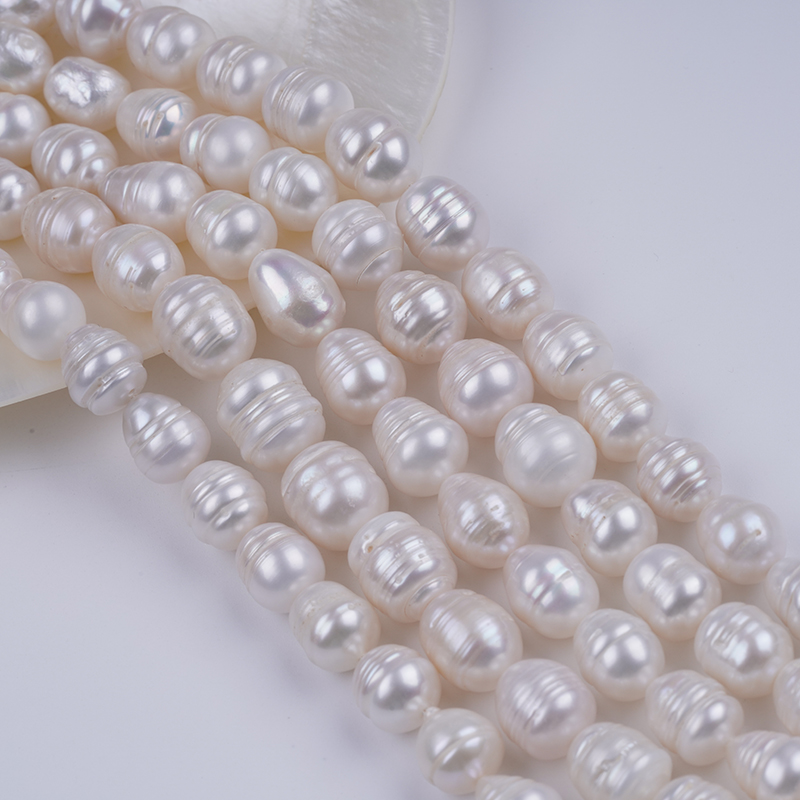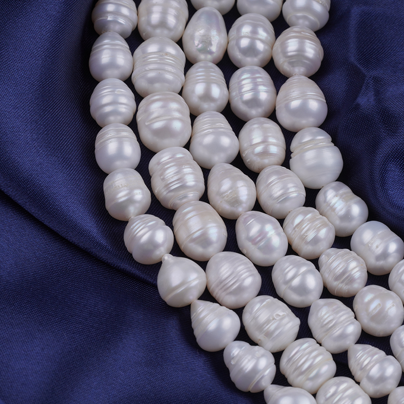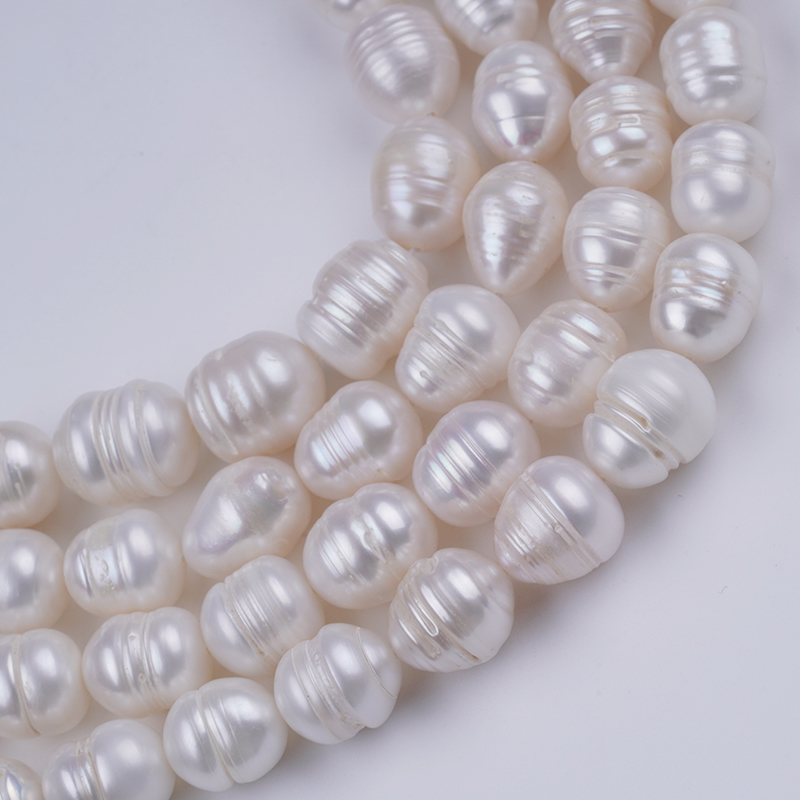 ซัพพลายเออร์เส้นไข่มุกน้ำจืด 18 ซม. 11-12 มม. สีขาว รูปทรงข้าว เส้นไข่มุกน้ำจืด