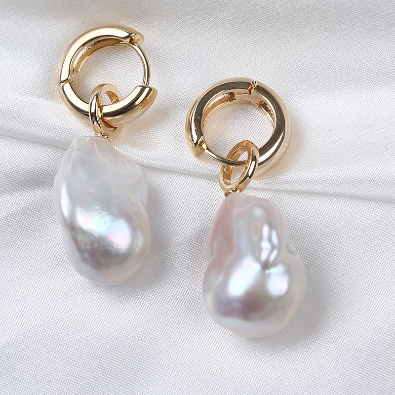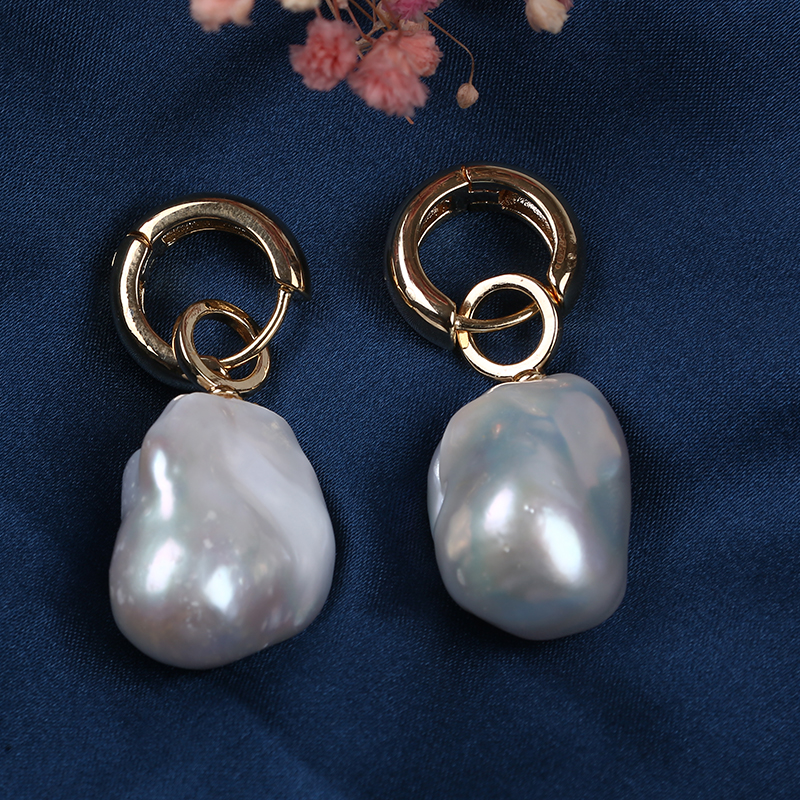 ต่างหูไข่มุกแบบสั่งทำ ไข่มุกบาร็อคธรรมชาติ