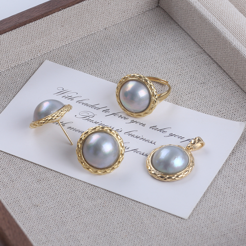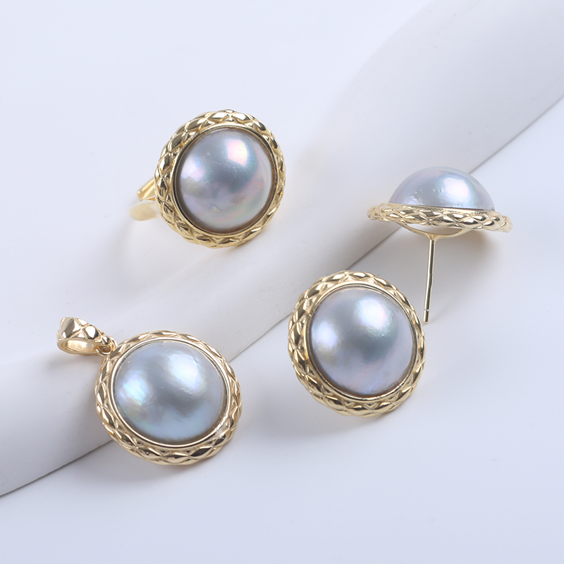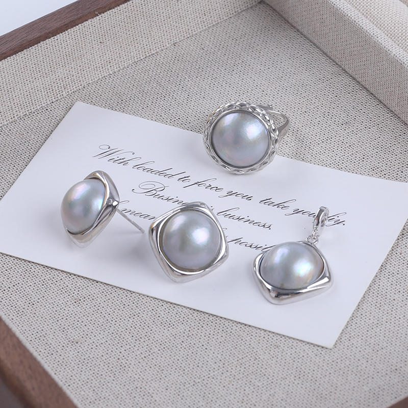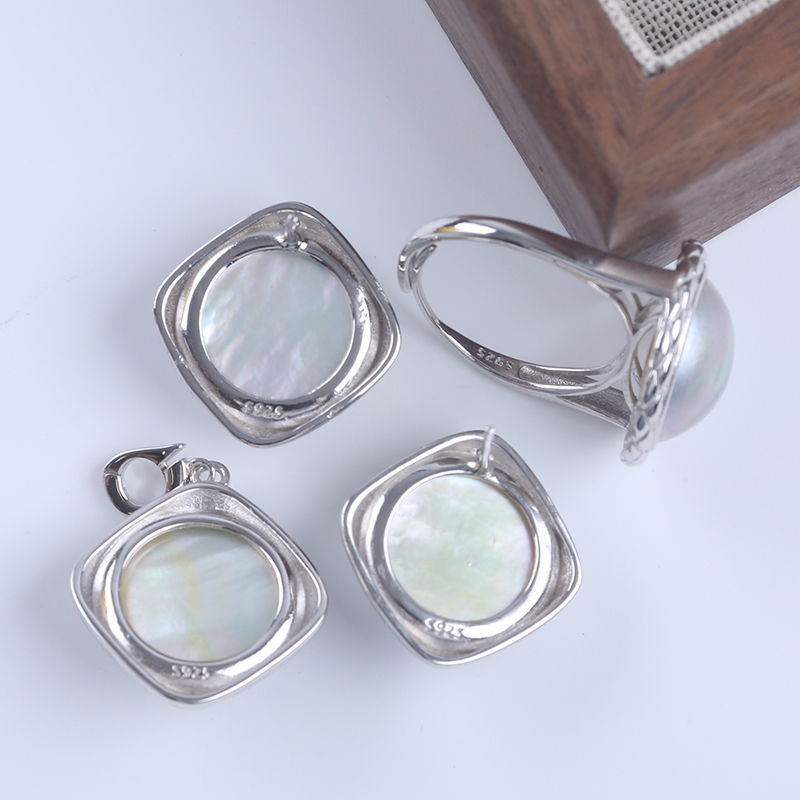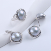 จีนไข่มุกขายส่ง S925 เงินสเตอร์ลิงธรรมชาติ Mabe ไข่มุกต่างหูแหวนคอเซ็ต DK9765