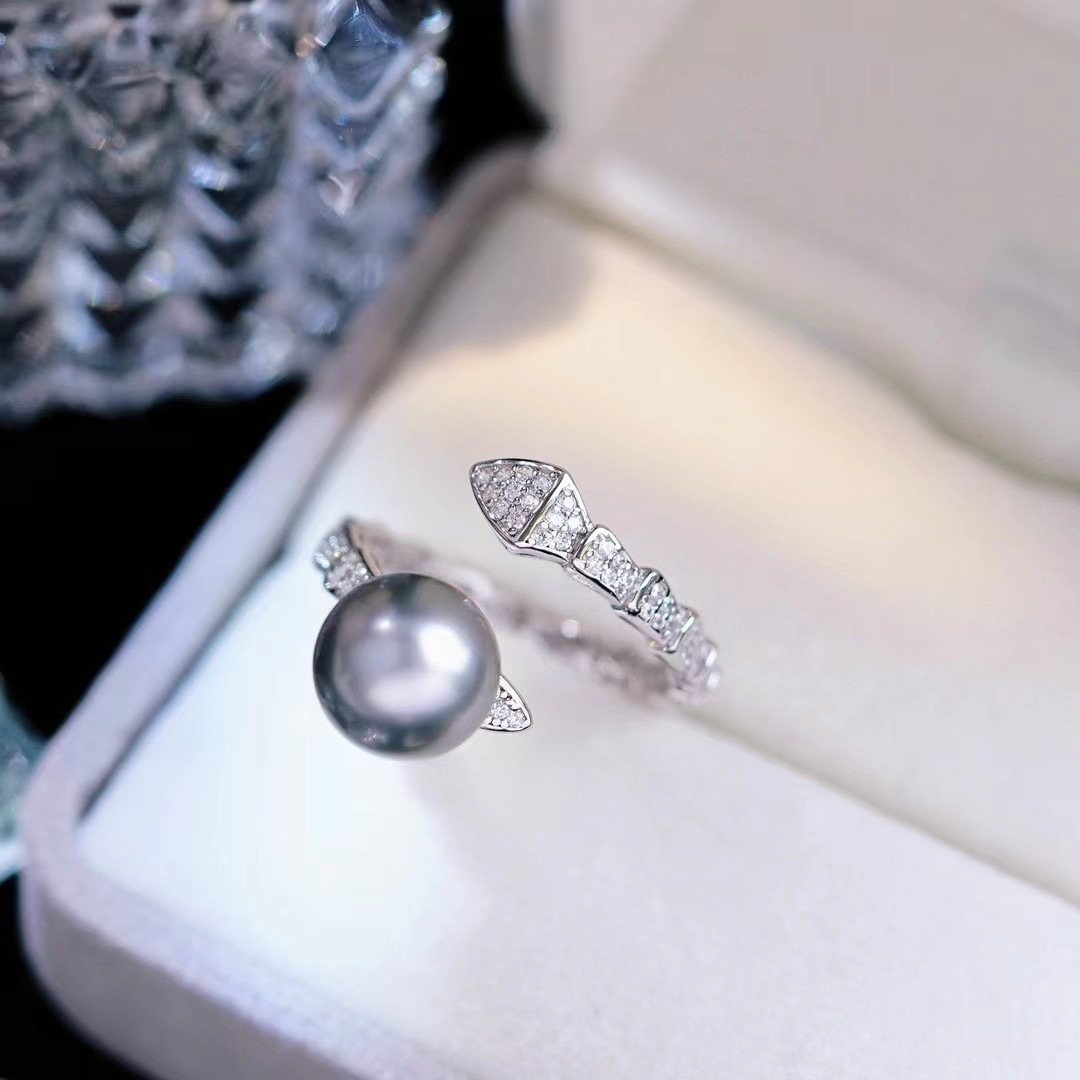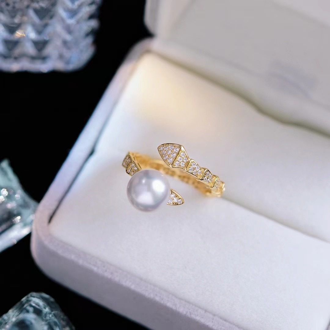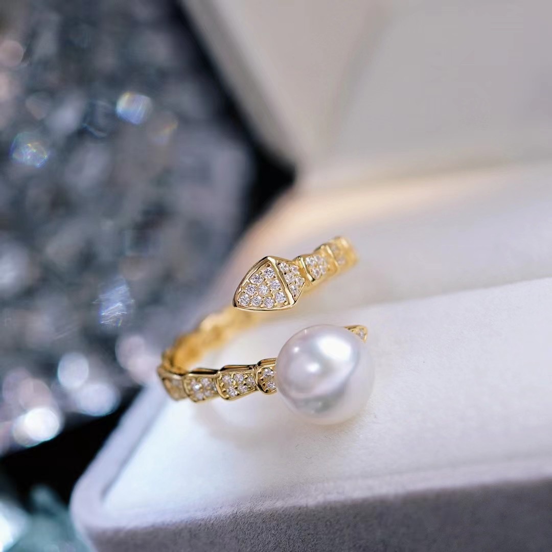 แหวนไข่มุกน้ำจืดแฟชั่นรูปงูทองแดงชุบทองคำประดับด้วยเพชรสังเคราะห์ ราคาโรงงาน