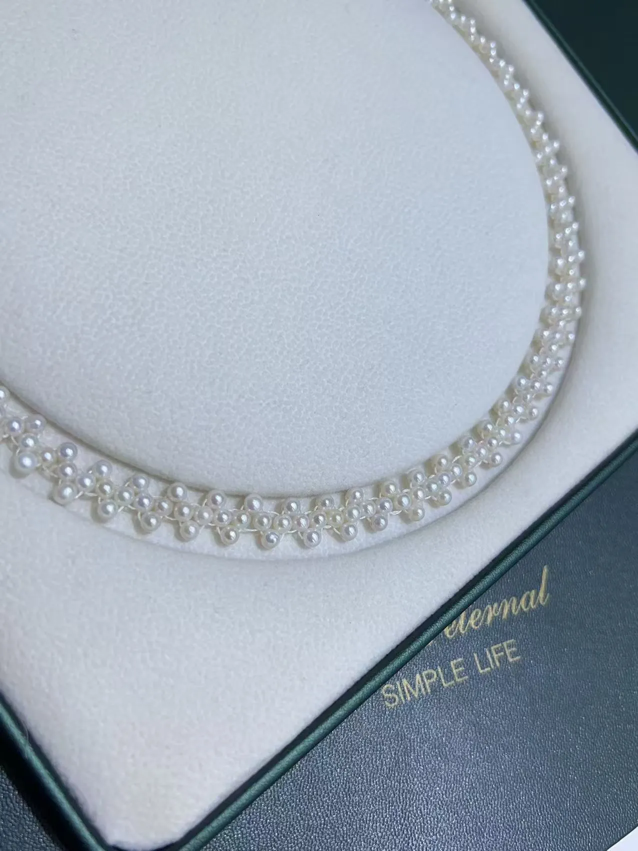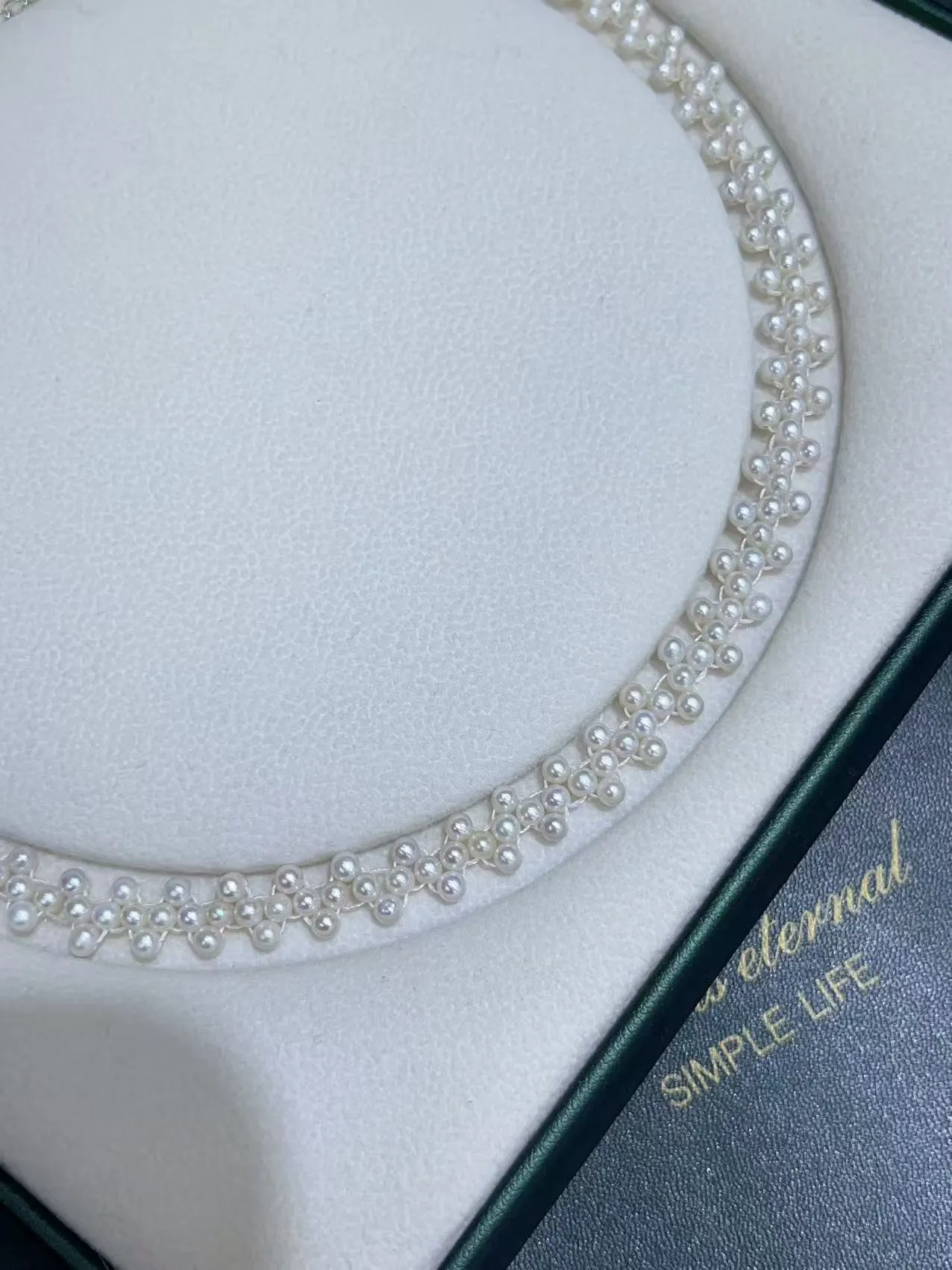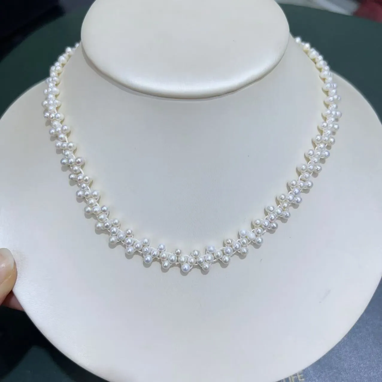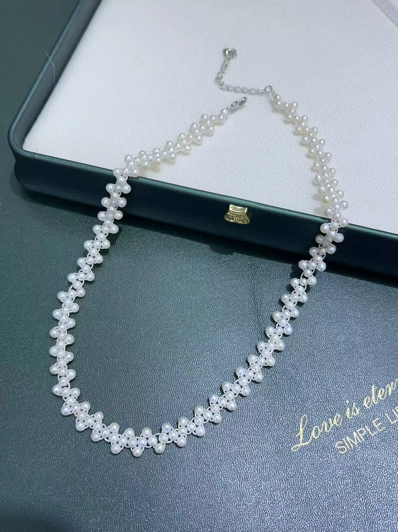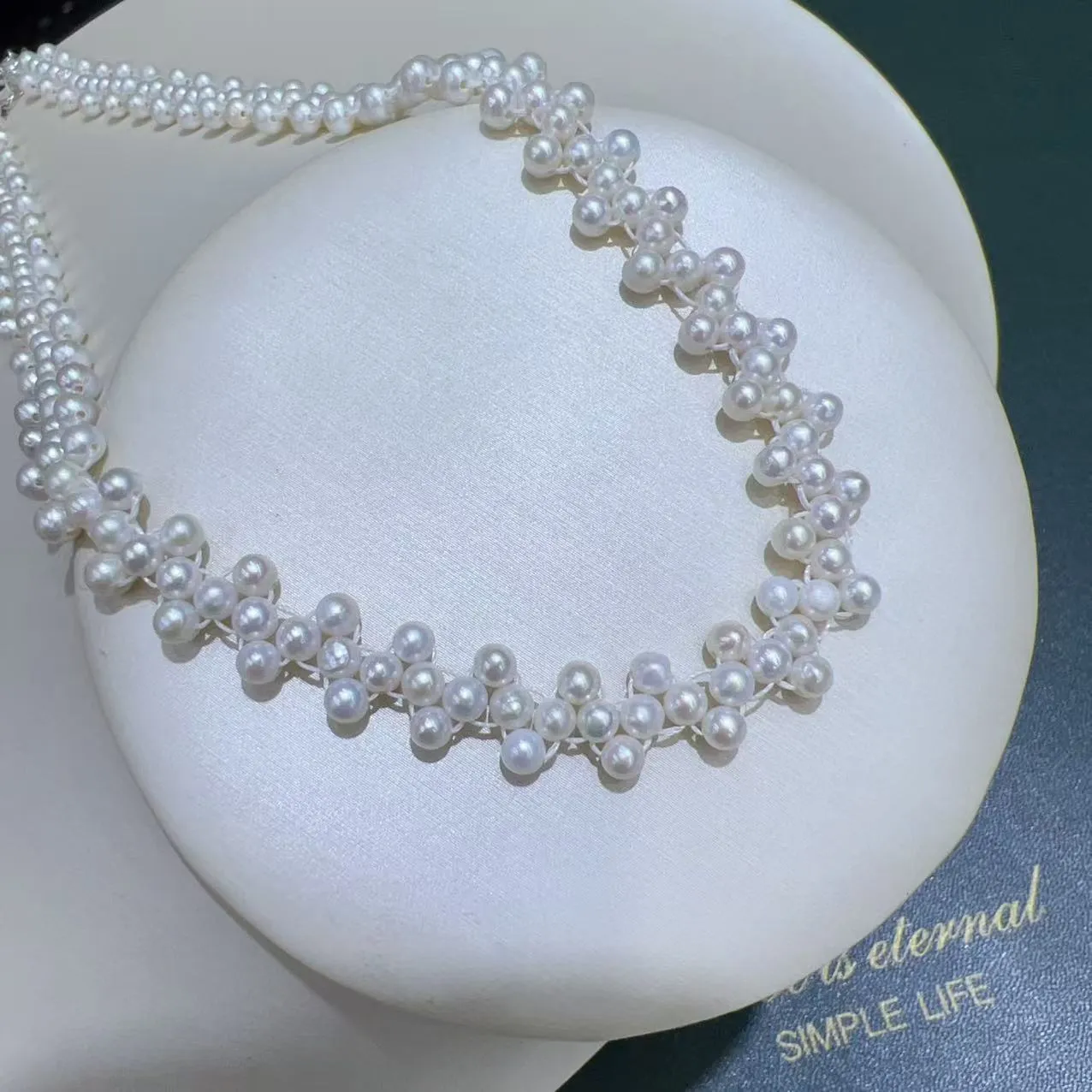 แฟชั่นย้อนยุคหวาน ๆ สร้อยคอไข่มุกน้ำจืดถักมือ แฟชั่นเครื่องประดับ DK9760