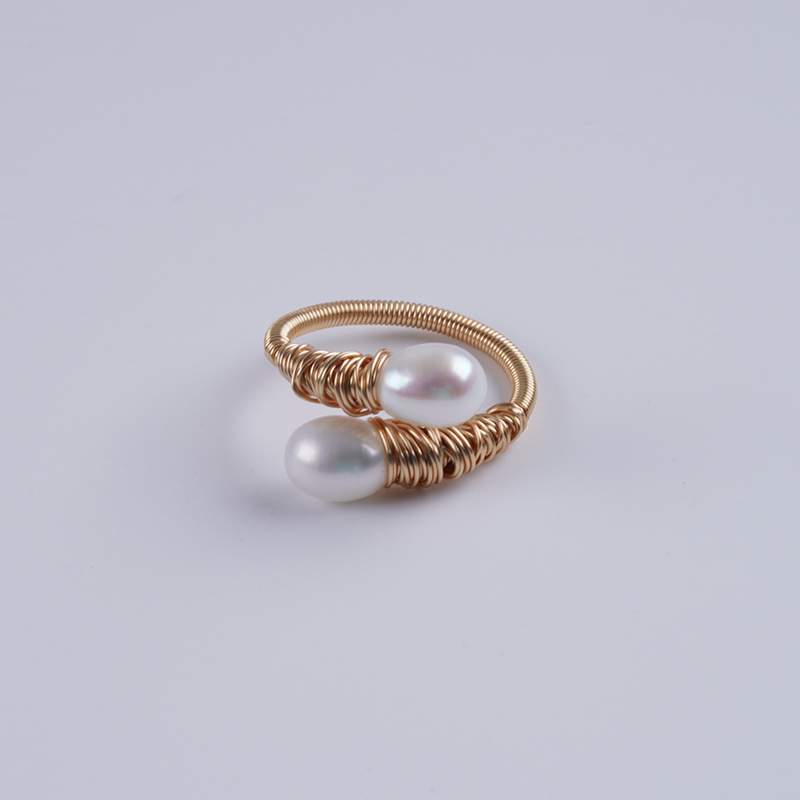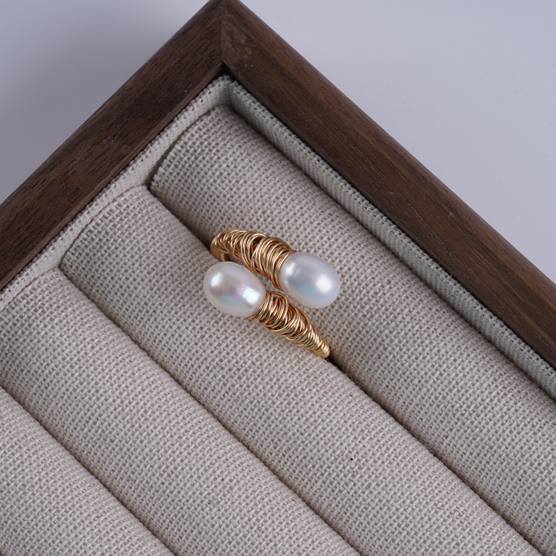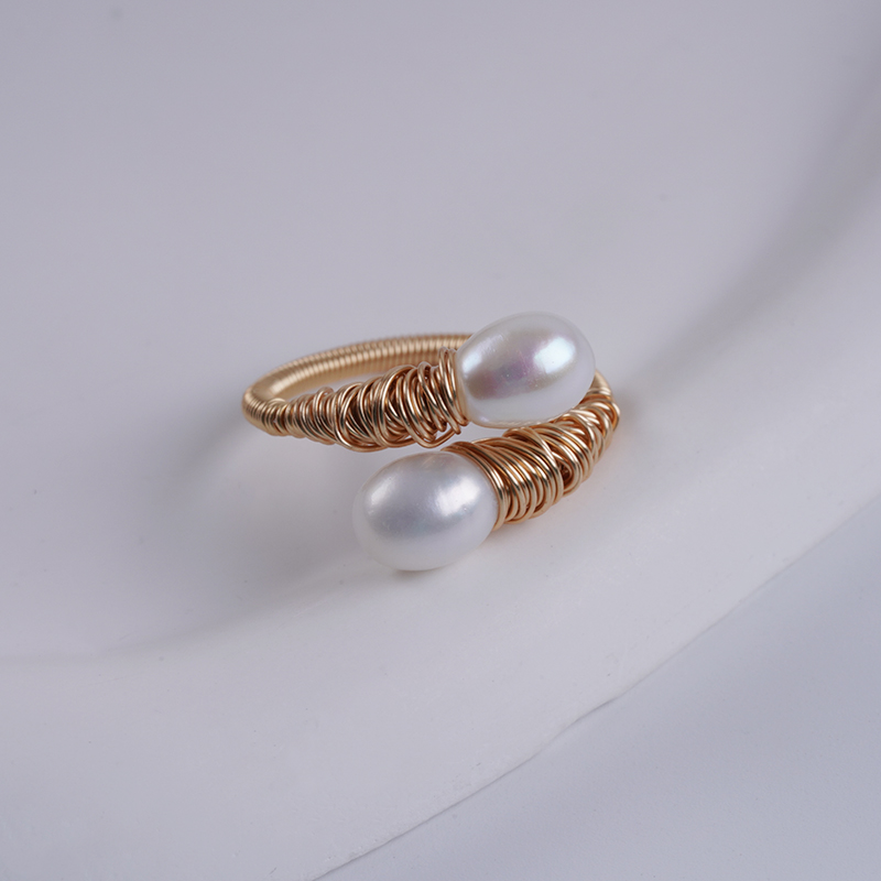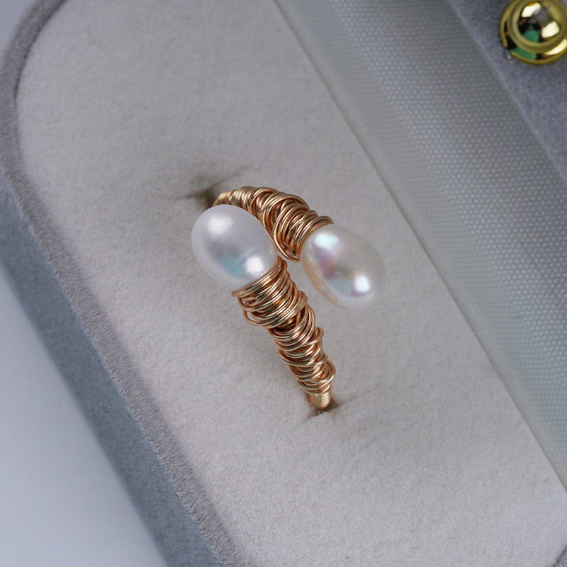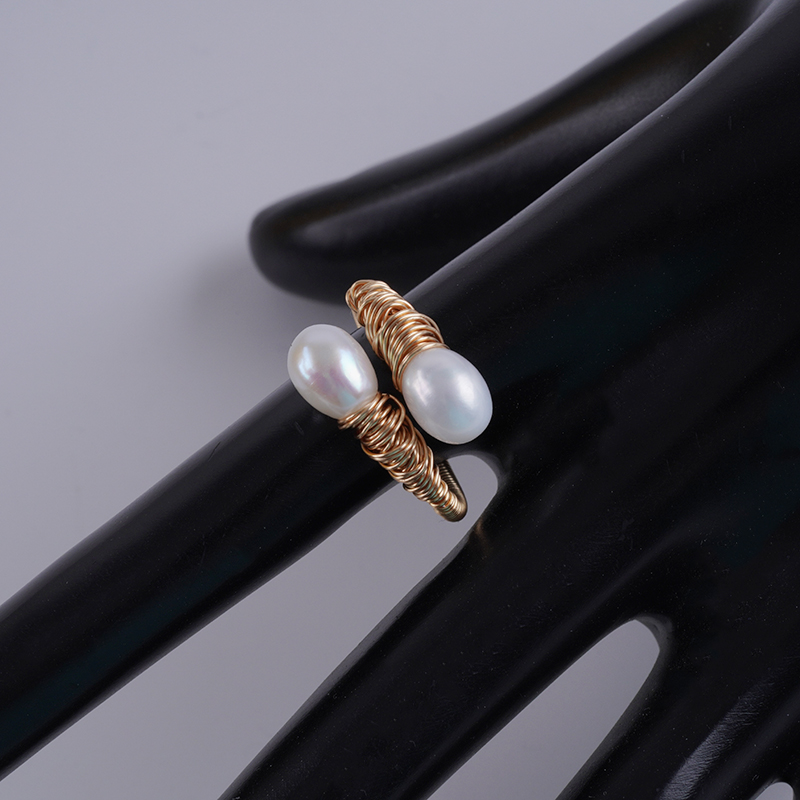 แหวนไข่มุกน้ำจืดแบบเรียบง่ายและสง่างาม แหวนเปิดทำมือสำหรับผู้หญิง