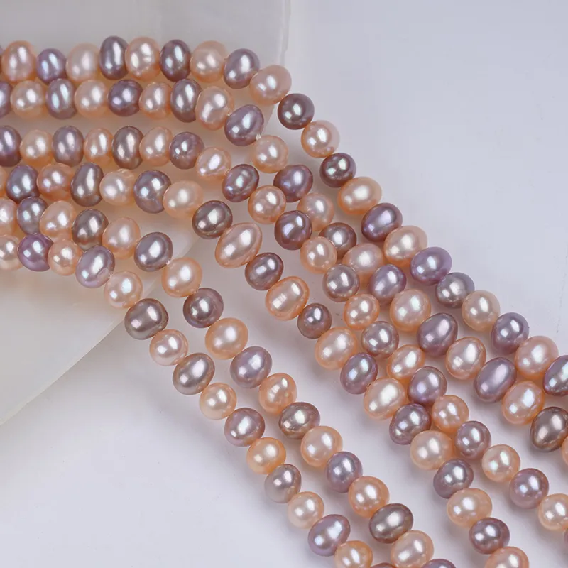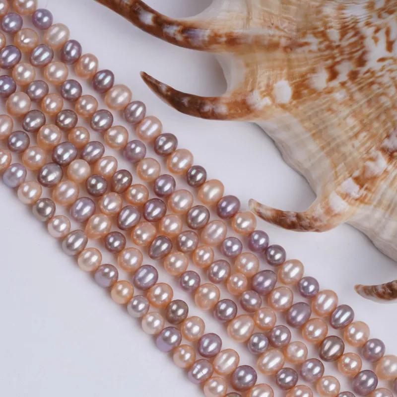 เส้นไข่มุกน้ำจืดจีน 4-5 มม. สีชมพูม่วง รูปทรงมันฝรั่ง สายไข่มุก DK9737