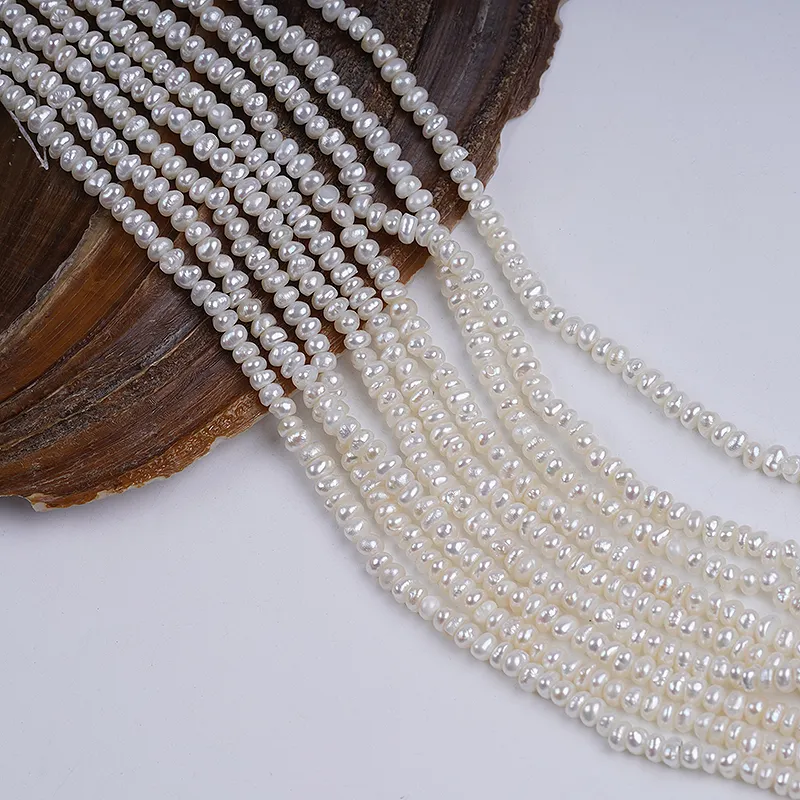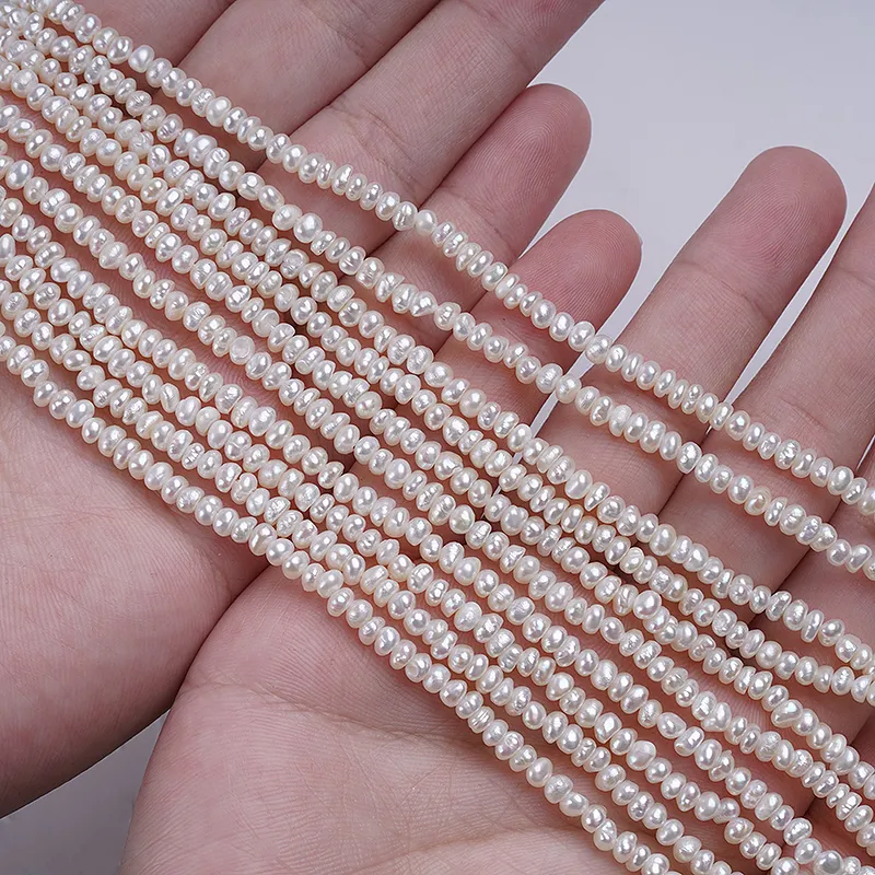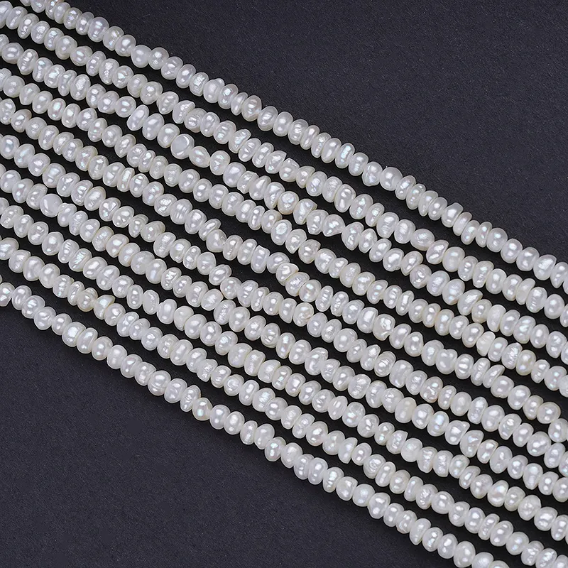 สายไข่มุกน้ำจืดแบบกำหนดเอง ขนาด 3-3.5 มม. สีขาว ไข่มุกแบบปุ่ม สำหรับทำเครื่องประดับ DK9733