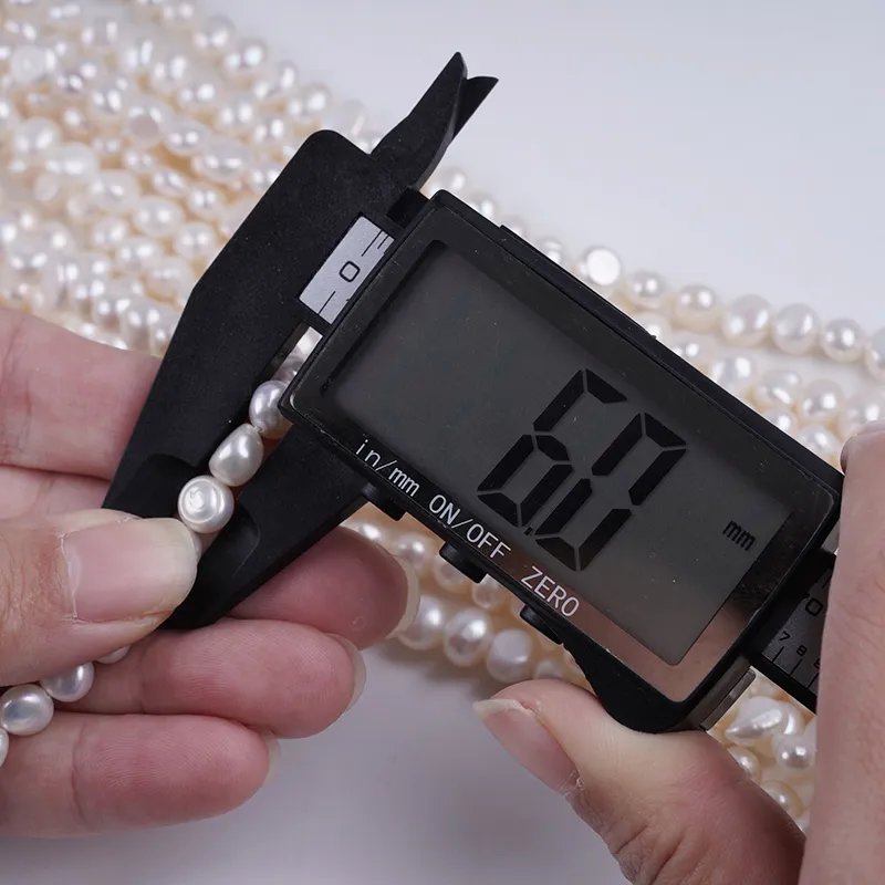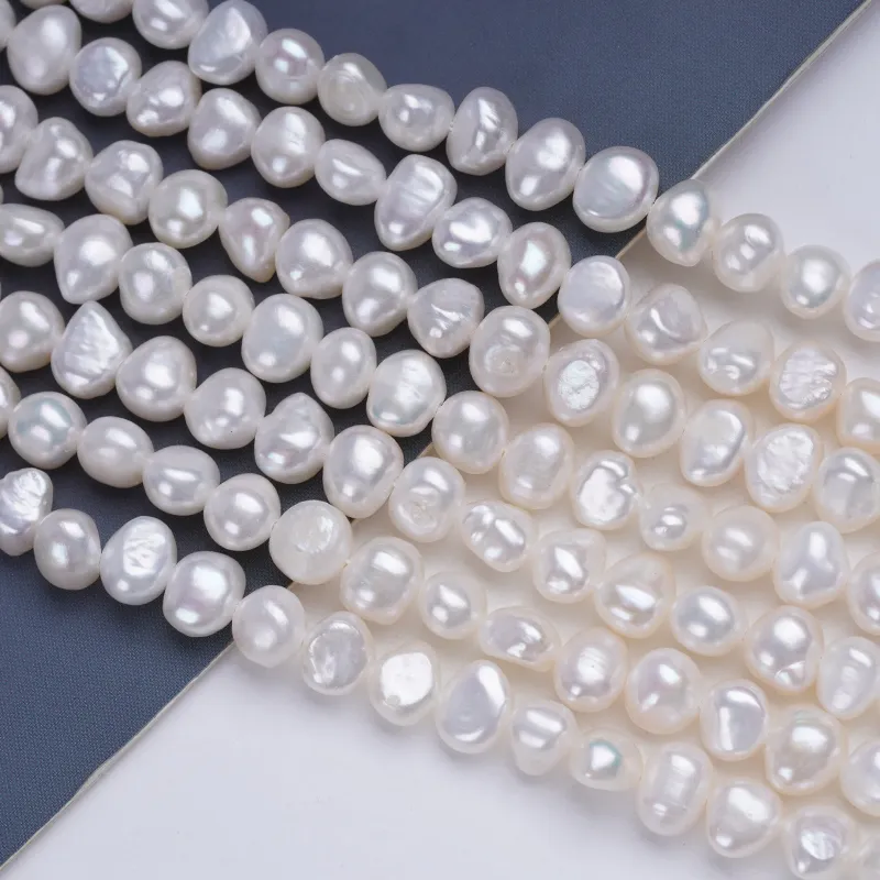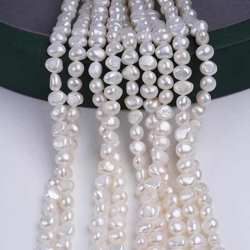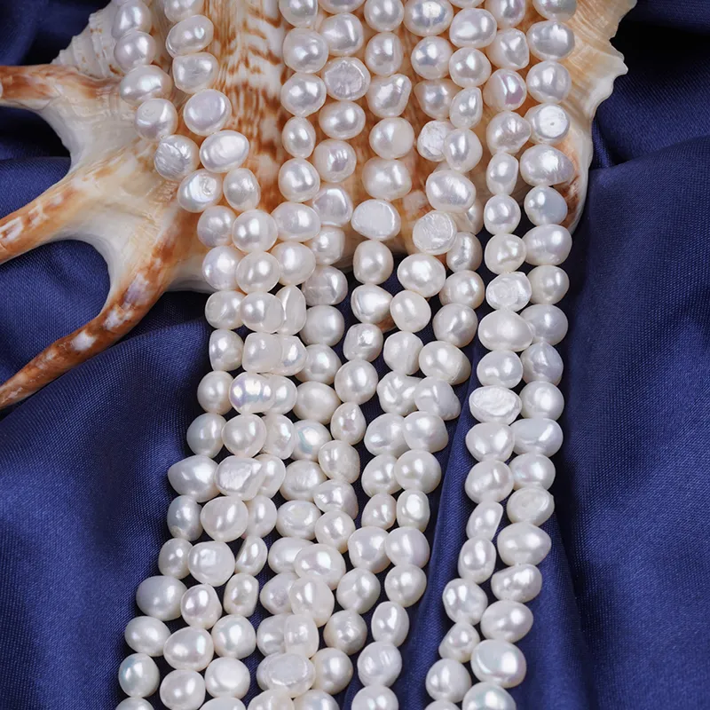โรงงานผลิตเส้นไข่มุกน้ำจืด ขนาด 6-7 มม. สีขาว เส้นไข่มุก Broque สำหรับทำเครื่องประดับ DK9738