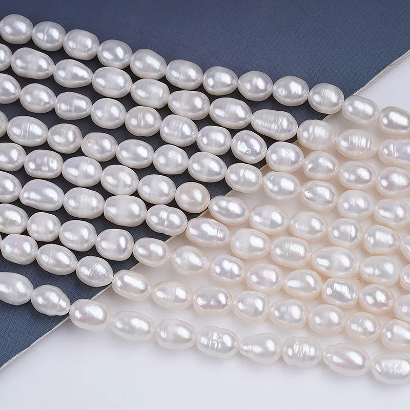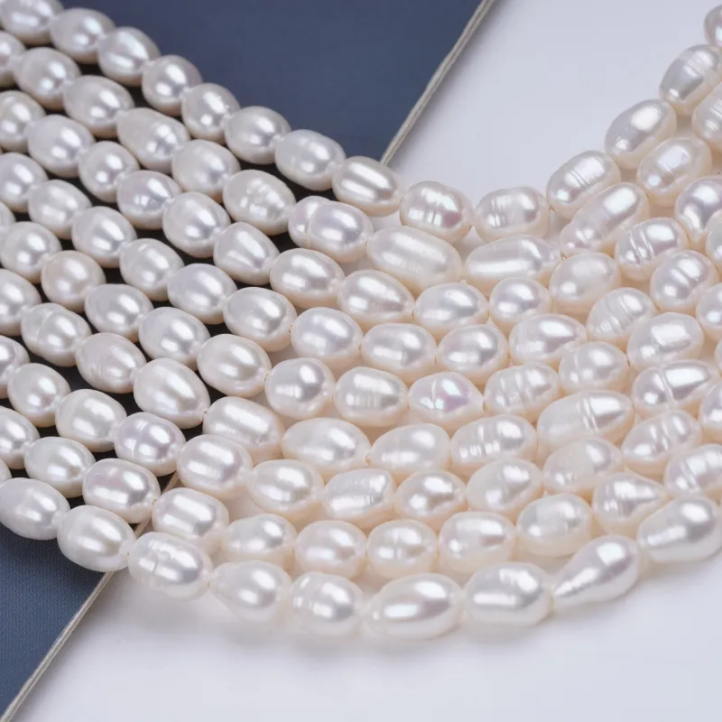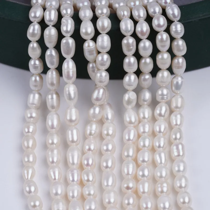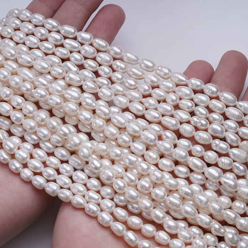 ผู้จัดจำหน่ายเส้นไข่มุกน้ำจืด ขนาด 6-7 มม. สีขาว รูปทรงเมล็ดข้าว สำหรับทำเครื่องประดับ DK9739