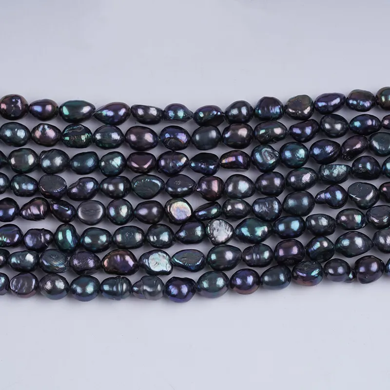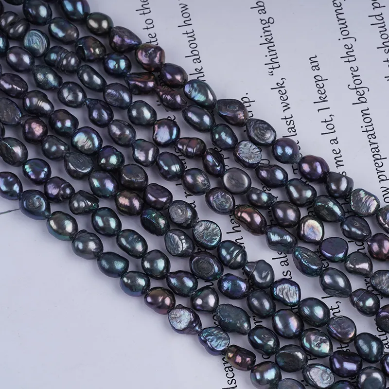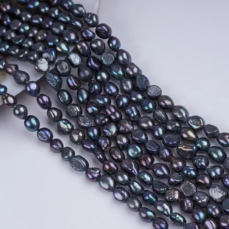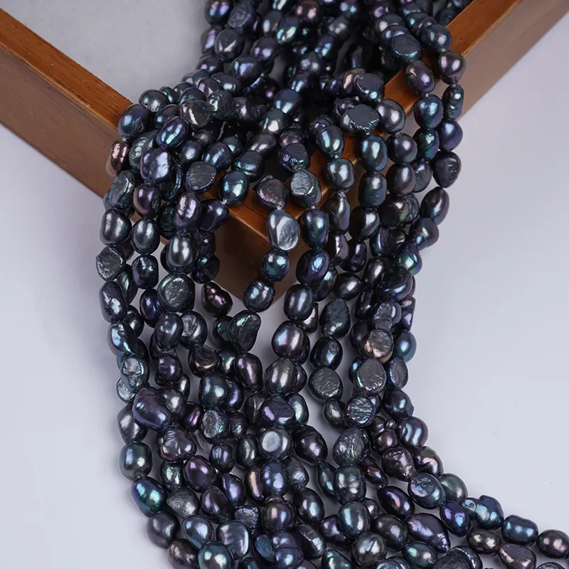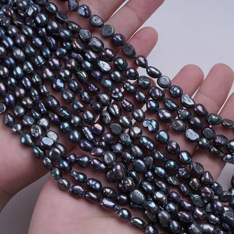 ขายส่งเส้นลูกปัดมุกน้ำจืดขนาด 6-7 มม. สีดำ ลูกปัดบาร็อค สำหรับทำเครื่องประดับ DK9736