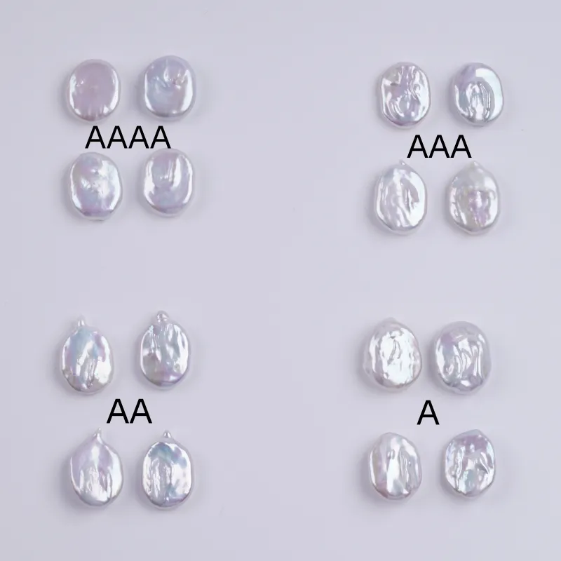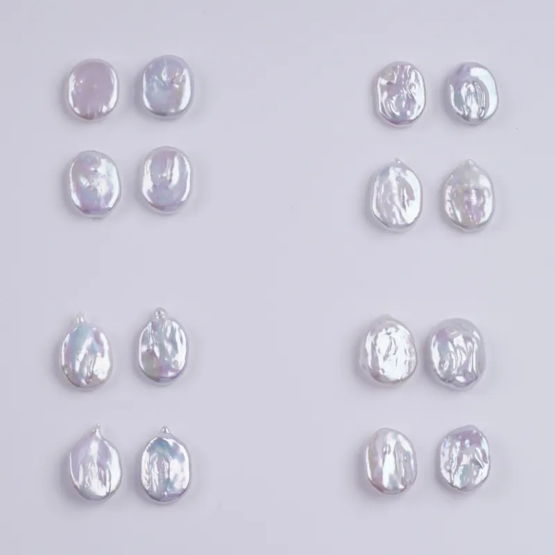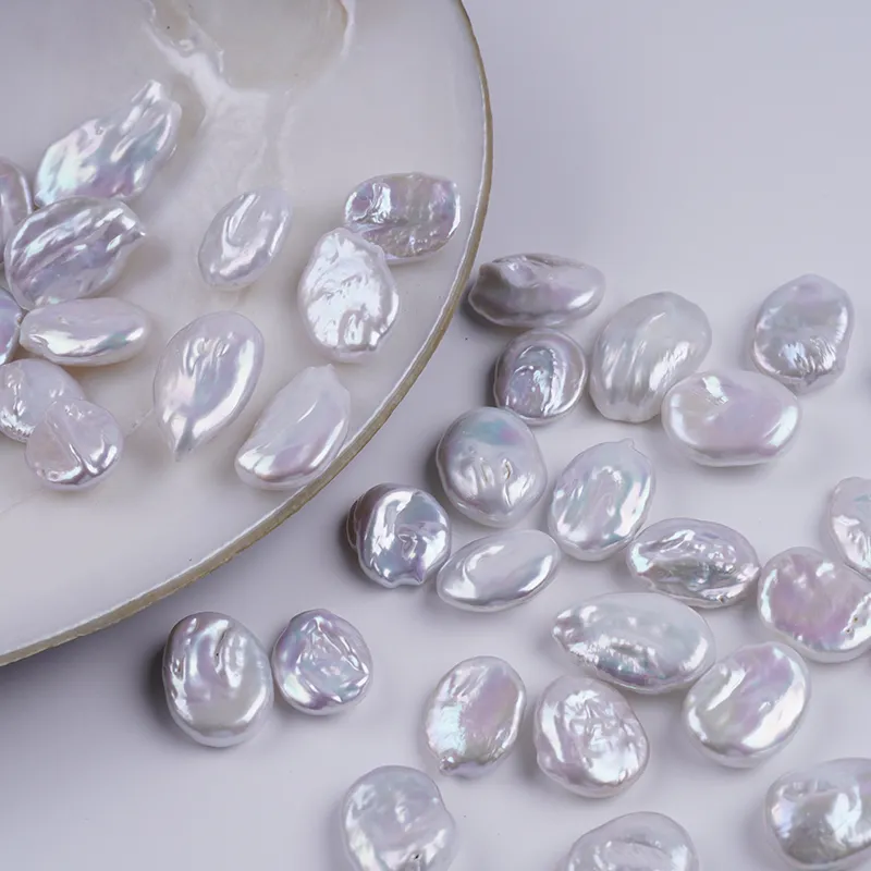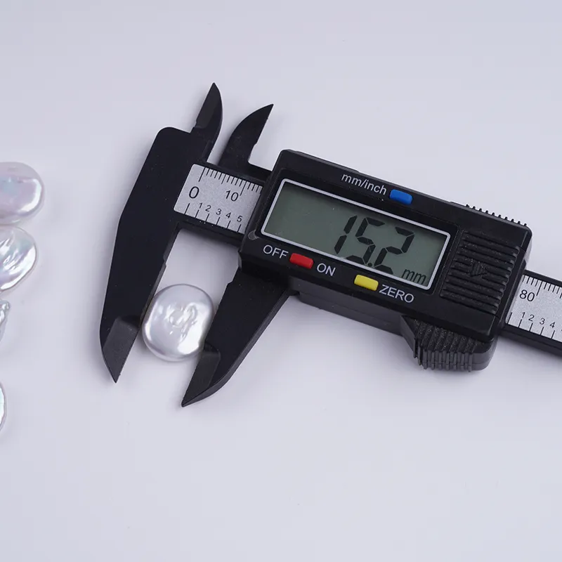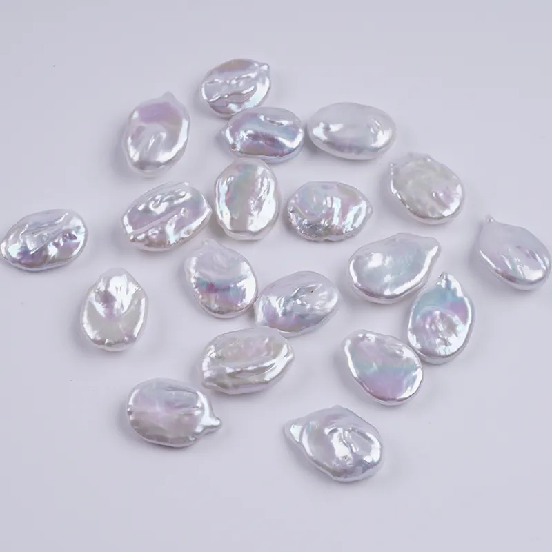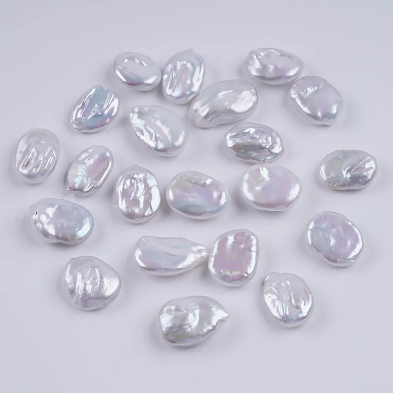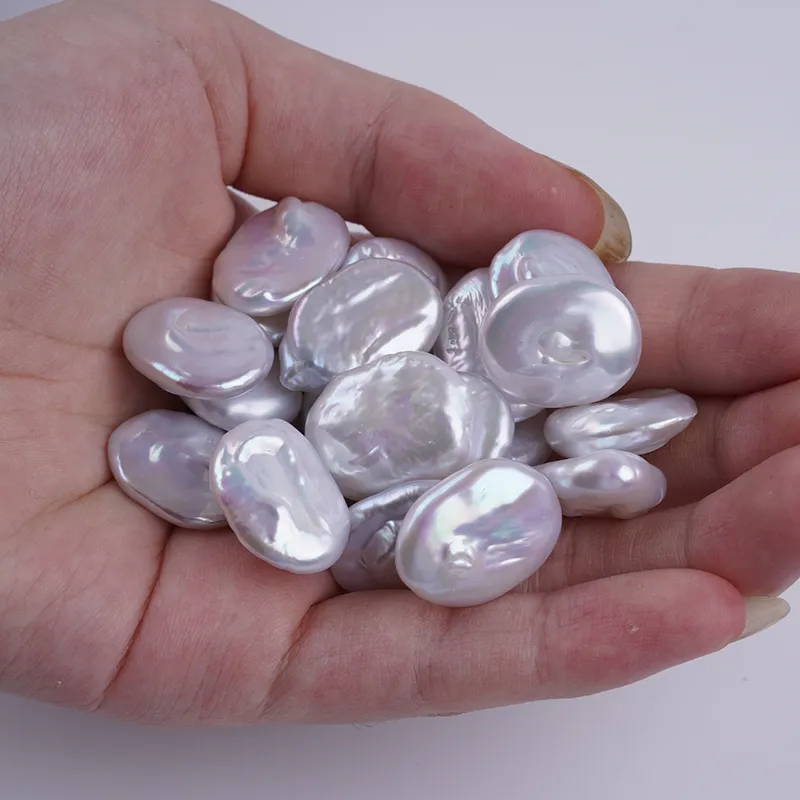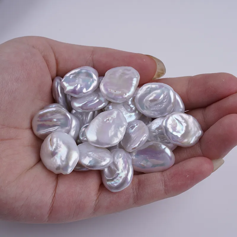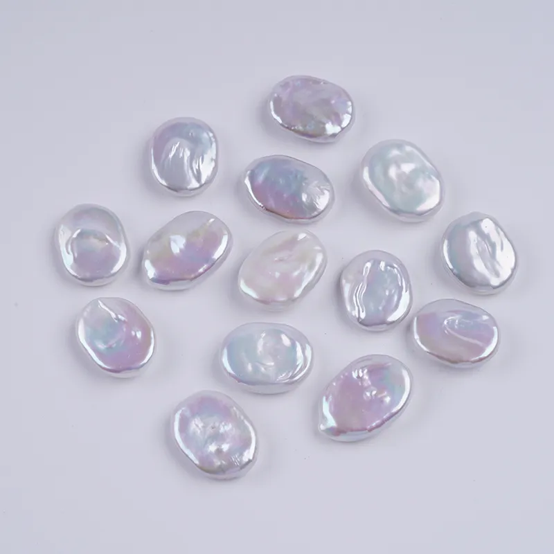 ผู้ผลิตไข่มุกหลุด 14-16 มม. สีขาว รูปทรงเหรียญ ไข่มุกน้ำจืด เม็ดหลุด DK9744
