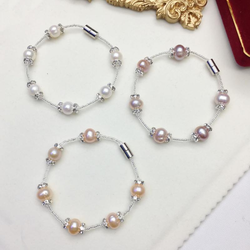 สร้อยข้อมือไข่มุกขายส่ง สะดวกด้วยแม่เหล็กติด