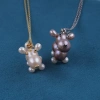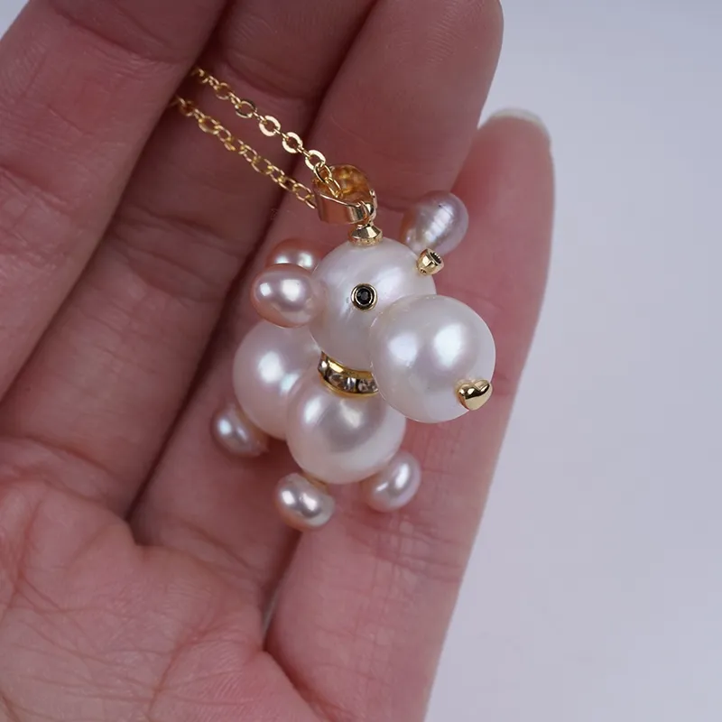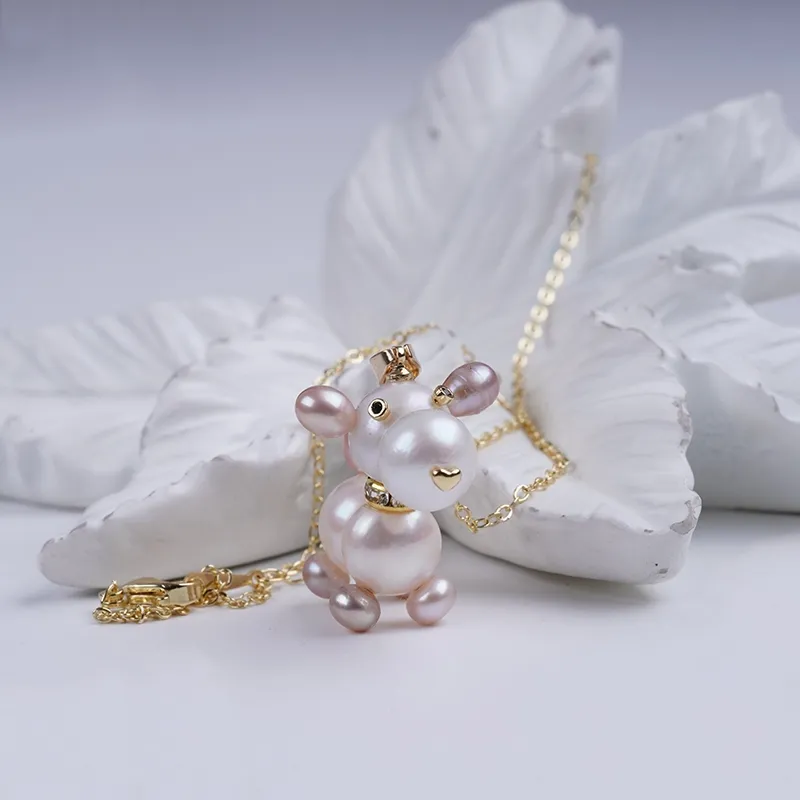 เครื่องประดับมุก แบบกำหนดเอง ลายสุนัขน่ารัก คอซองมุกธรรมชาติ สำหรับผู้หญิง DK9743