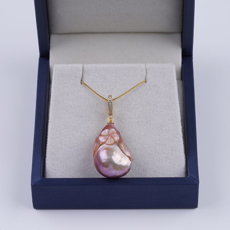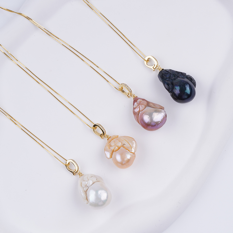 ผู้ผลิตสร้อยไข่มุก S925 โซ่เงินสเตอร์ลิง สร้อยไข่มุกบาโรกน้ำจืด จี้เงิน