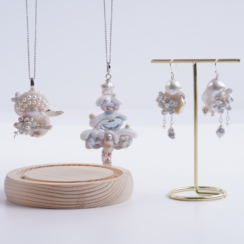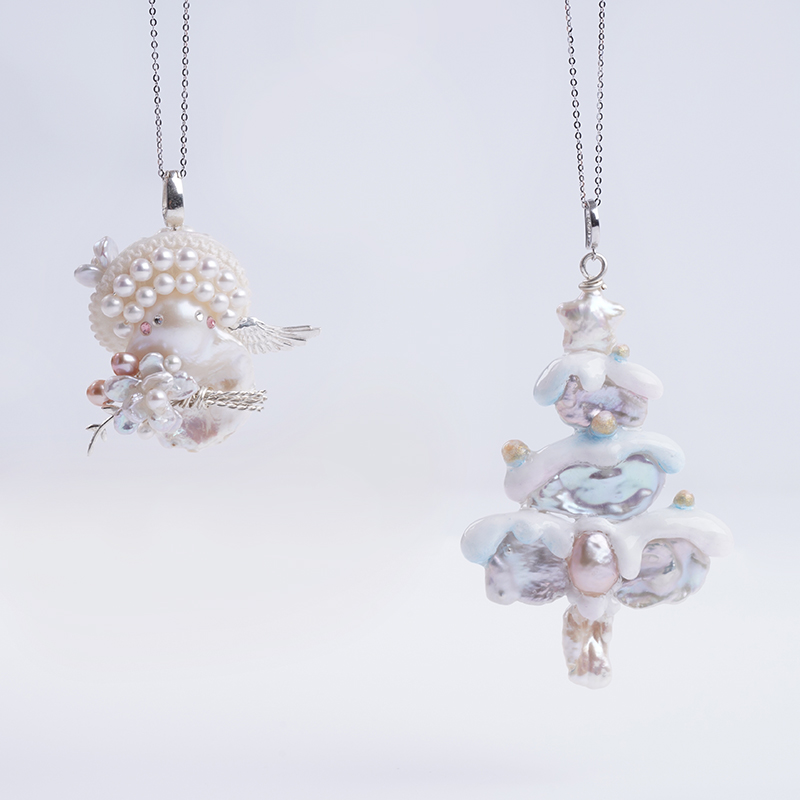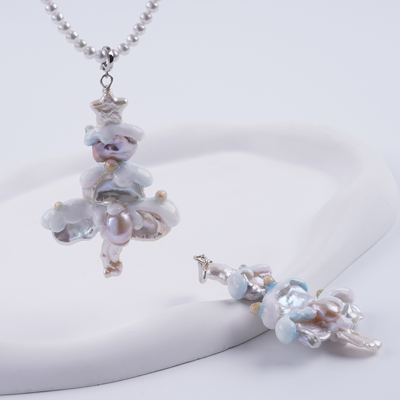 เพิร์ล แพนเดนท์ แบบกำหนดเอง เพิร์ลน้ำจืดธรรมชาติ แพนเดนท์ ออกแบบต้นคริสต์มาสที่ exquisite DK9763