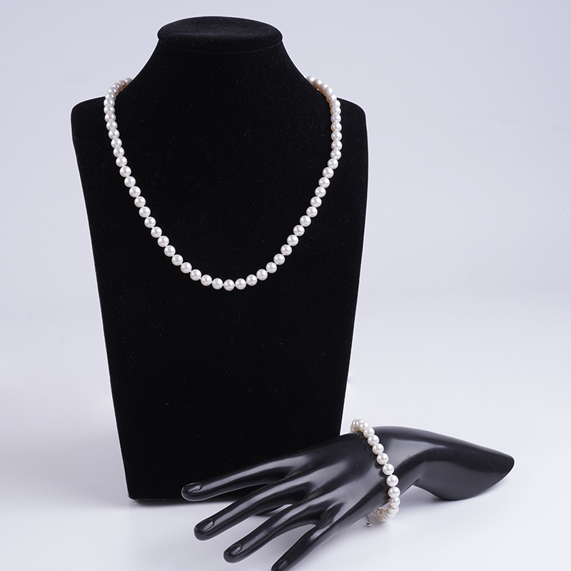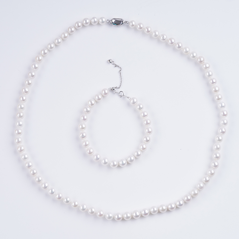 ชุดไข่มุกแบบกำหนดเอง ขนาด 7-8 มม. รูปทรงกลม สายสร้อยและสร้อยข้อมือจากไข่มุกน้ำจืด