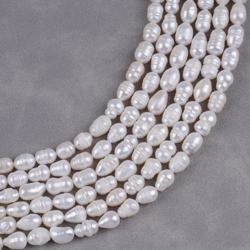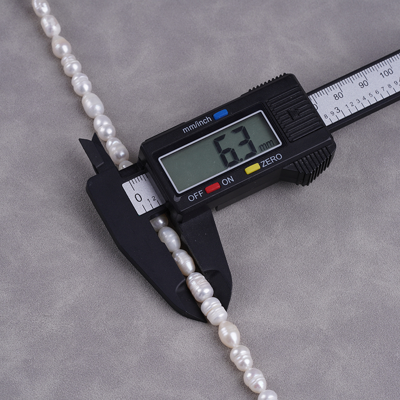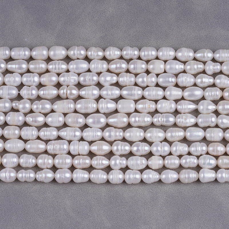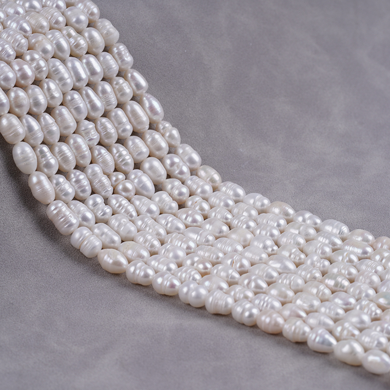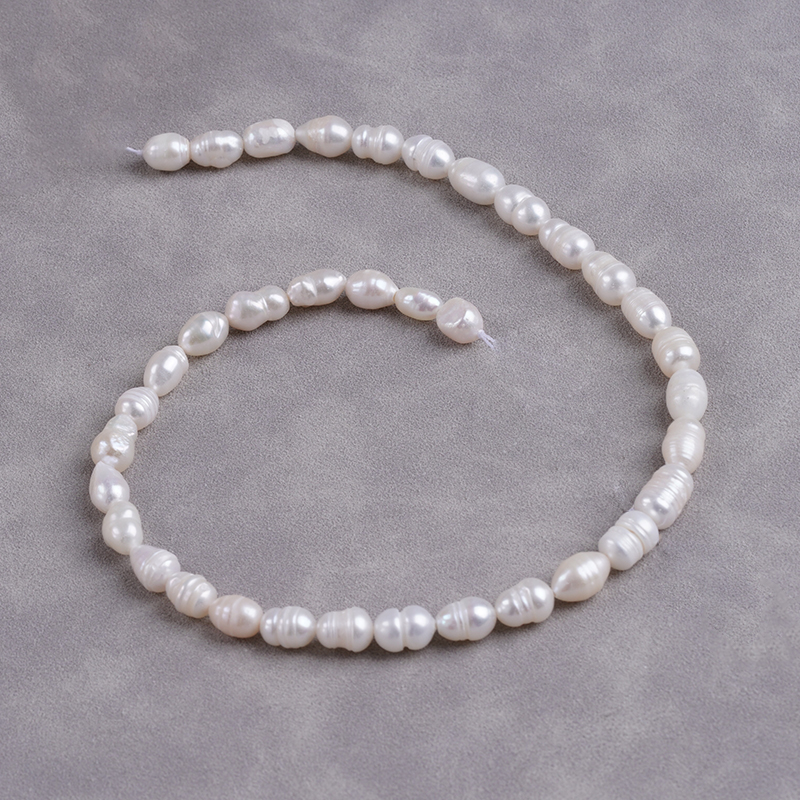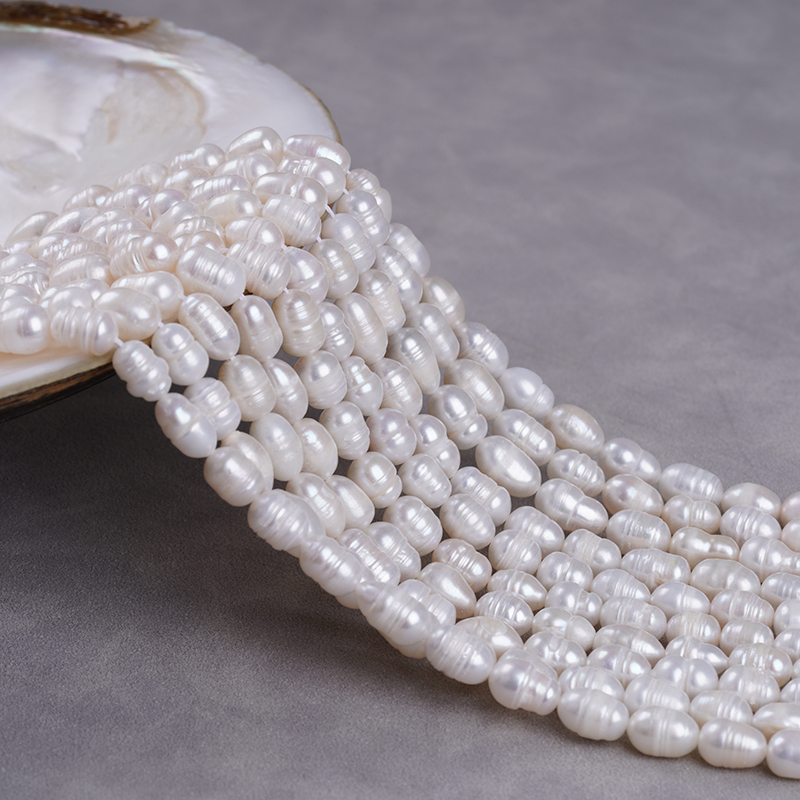 โรงงานผลิตสายไข่มุก 6-7 มม. สีขาว รูปร่างข้าว สายไข่มุกน้ำจืด