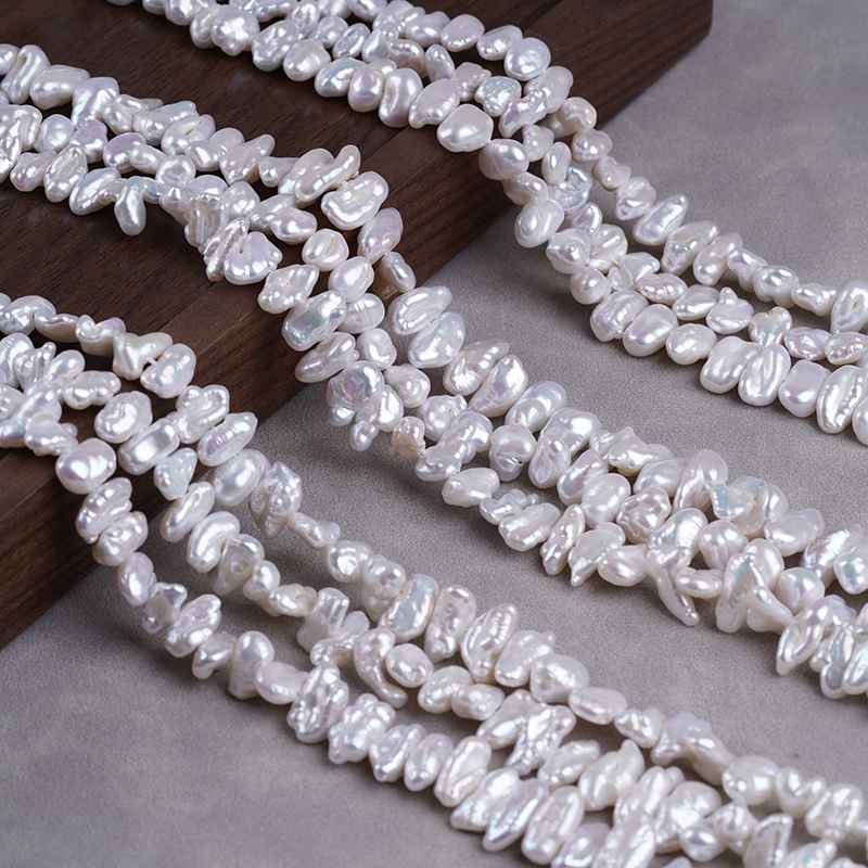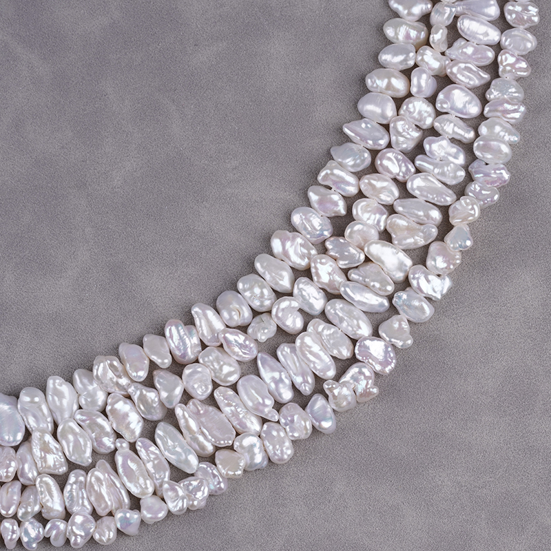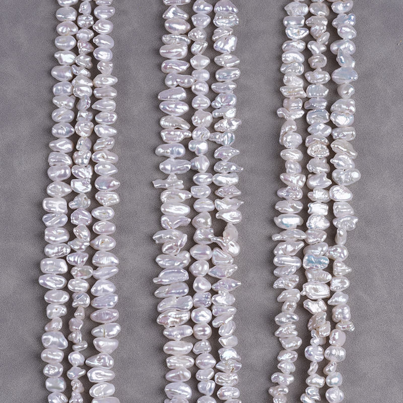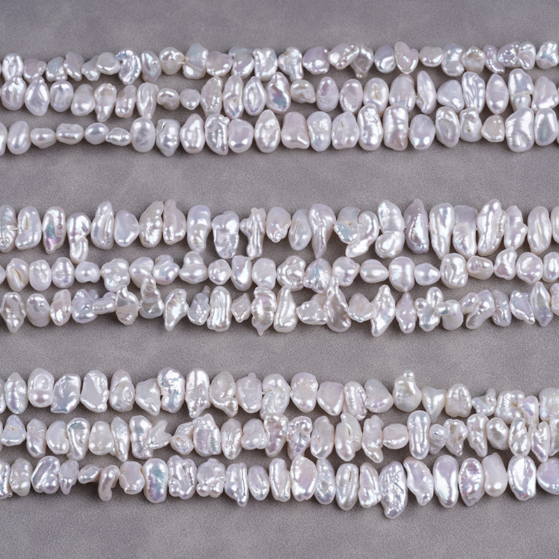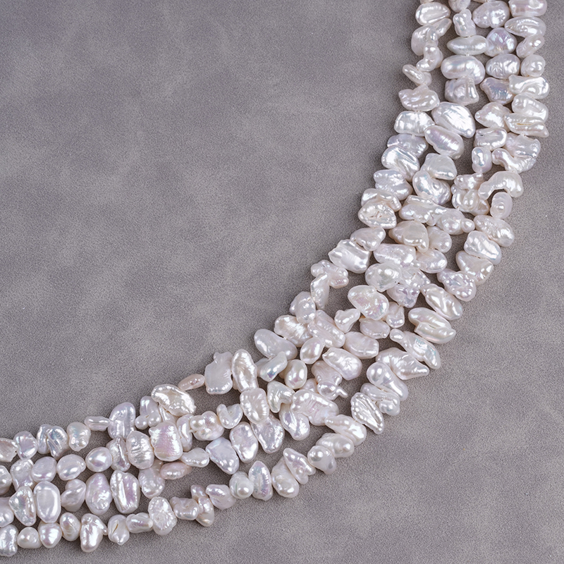 ผู้ผลิตสร้อยไข่มุก 5-8mm สีขาว ไข่มุกบิวะธรรมชาติน้ำจืด