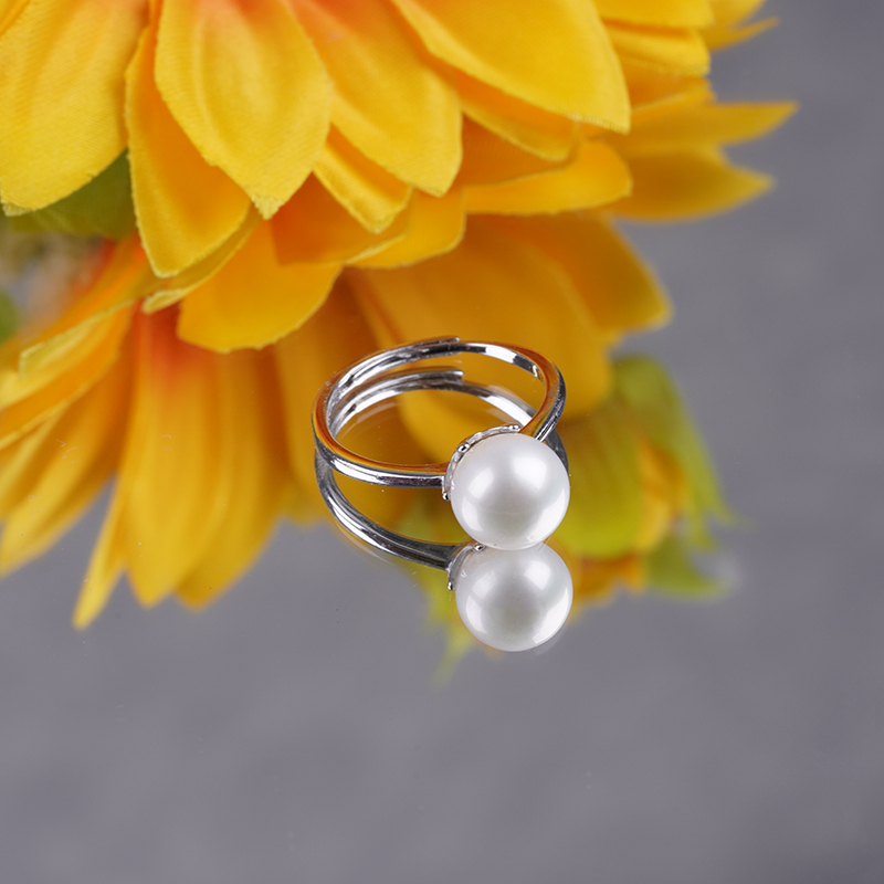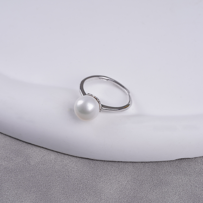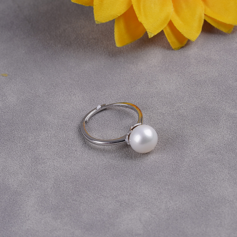 แบบเรียบง่าย 925 Sterling Silver Ring แหวนไข่มุกน้ำจืด ขนาดปรับได้
